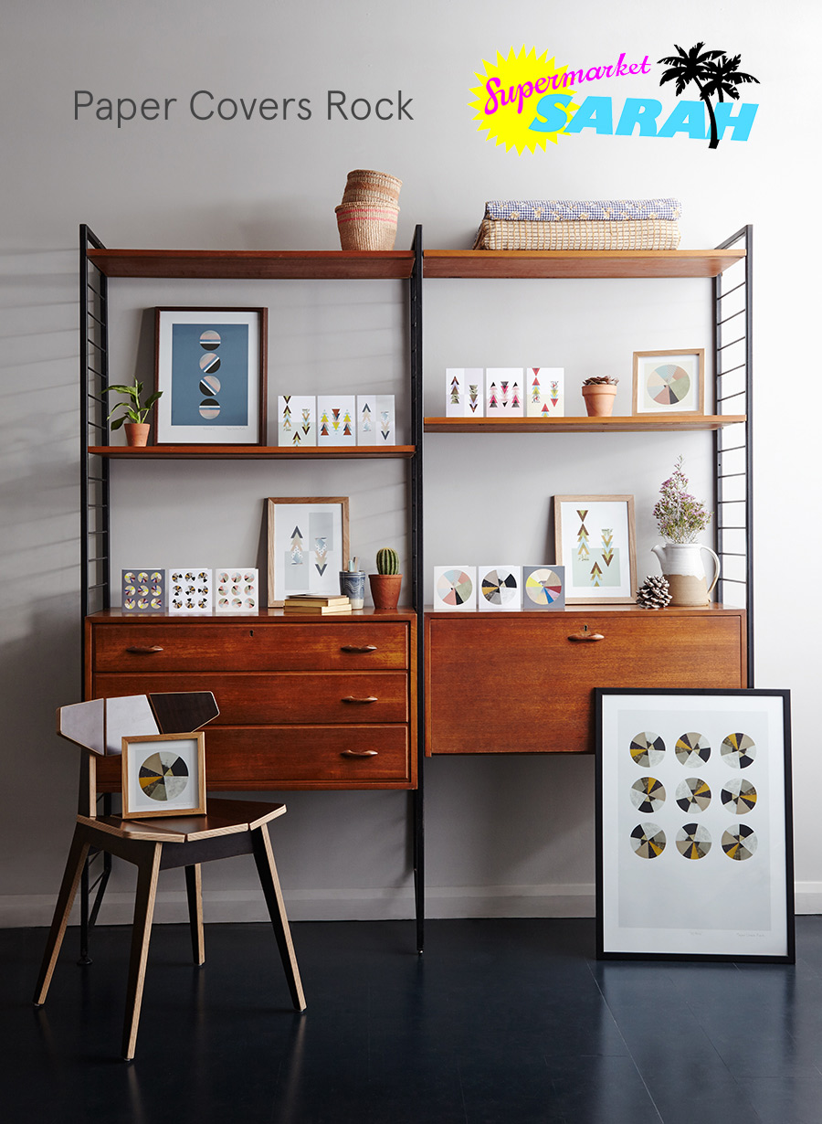 In 2015, Sarah Bagner, aka Supermarket Sarah, invited Rachel to put together a Paper Covers Rock wall for her website. The concept was an online shop where customers could ‘click and buy’ products featured on wall spaces curated by different designers and makers.